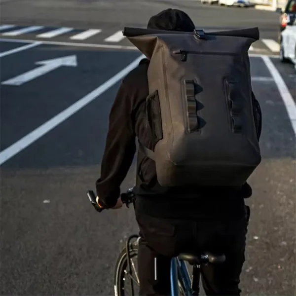 • waterproof cover with roll-top closure, easy to open zippered main compartment that’s always dry.