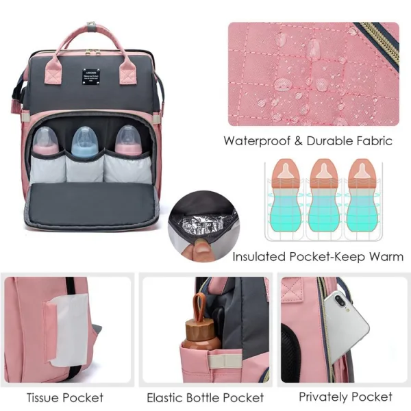 - Versatile Carrying Options: The backpack is designed with multiple carrying styles, offering a comfortable experience whether worn on the back, hung on the stroller, or carried by hand.
